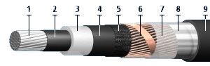 Элементы конструкции кабеля АПвП2г 1х630/50