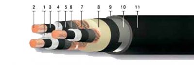 - Экран поверх изоляции каждой жилы – из электропроводящей сшитой композиции полиэтилена, сверху дополняется обмоткой из электропроводящей полимерной ленты или бумаги;